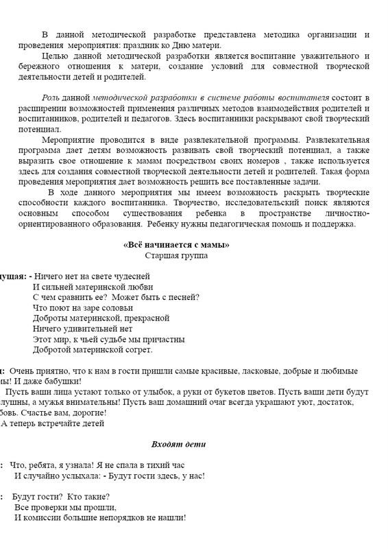 Сценарий Развлечения Ко Дню Матери В Старшей Группе Всё Начинается С Мамы