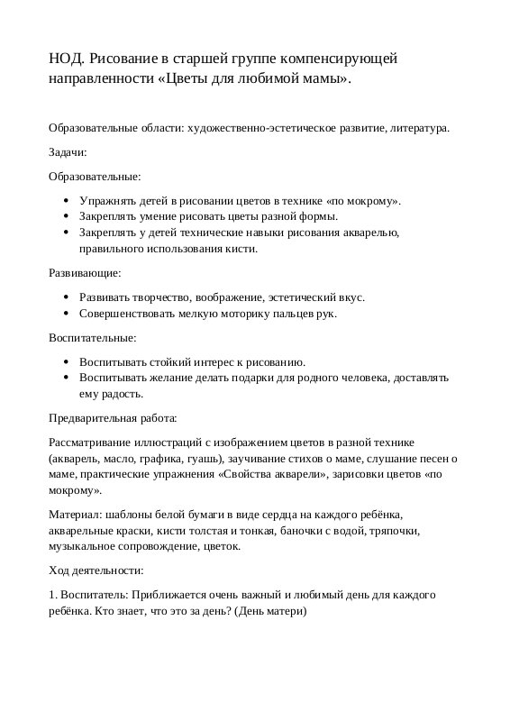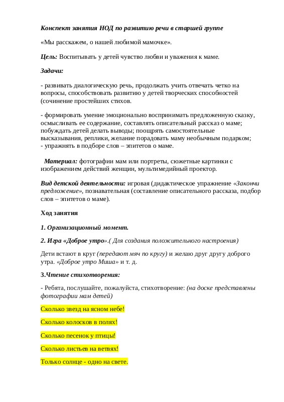 Нод Развитие Речи(Ко Дню Матери) Мамочка Милая... Старшая Группа