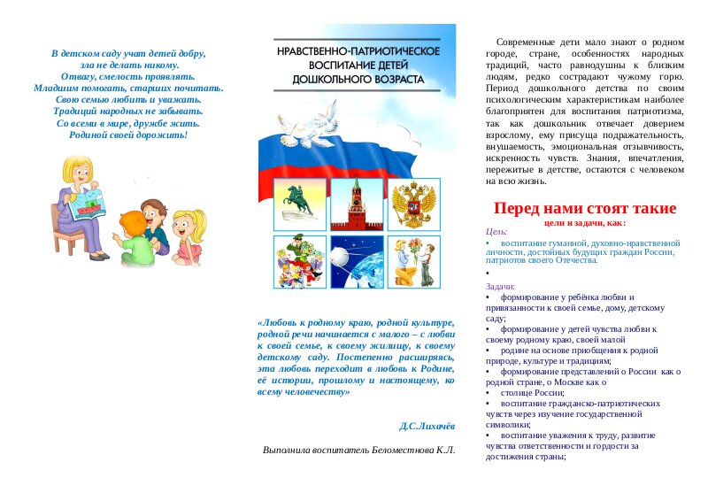Buklet Po Patrioticheskomu Vospitaniyu Starshikh Doshkolnikov