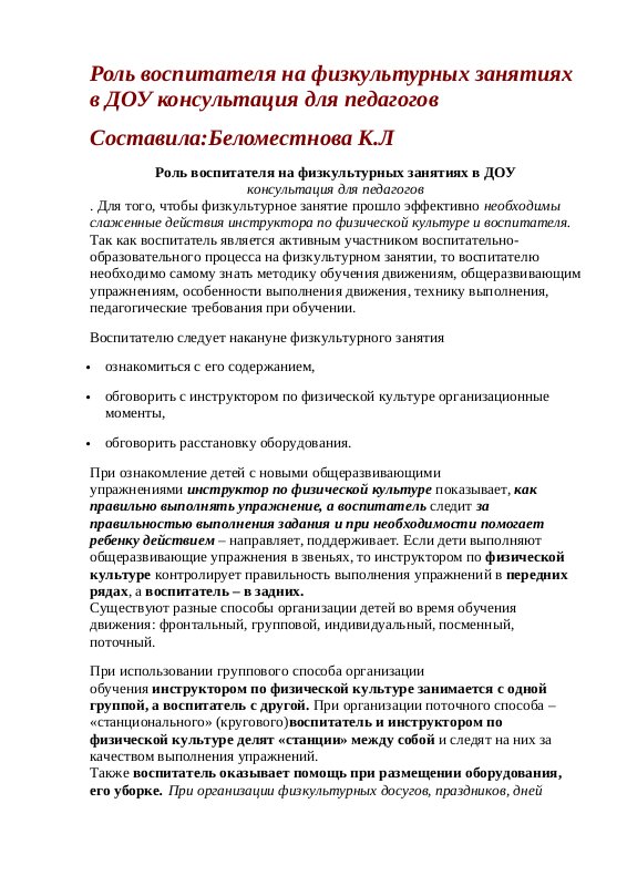 Презентация Роль Воспитателя На Физкультурных Занятиях